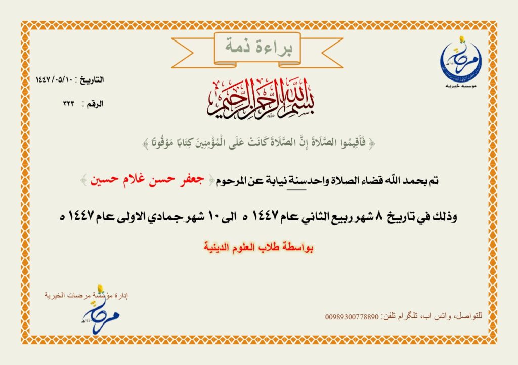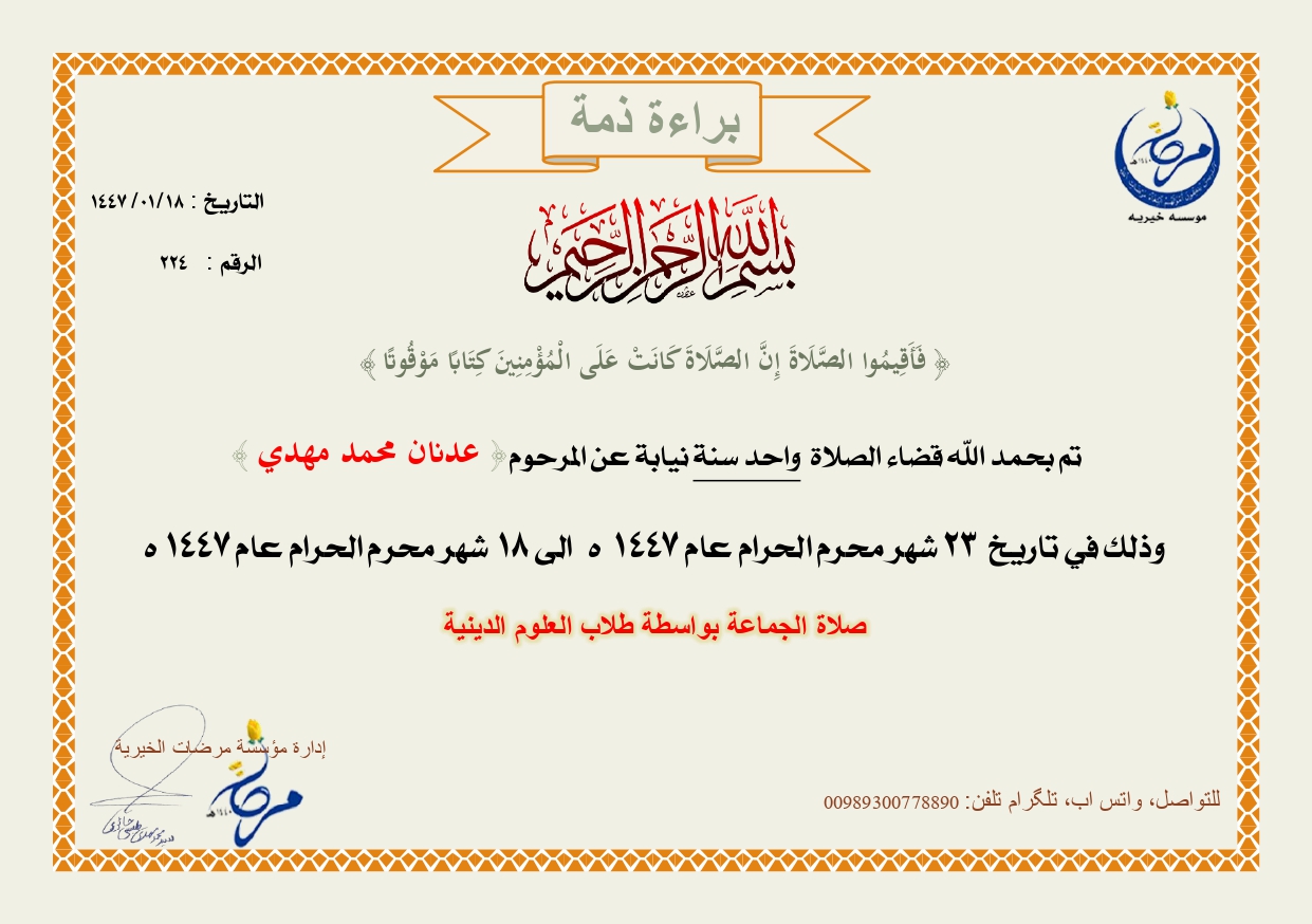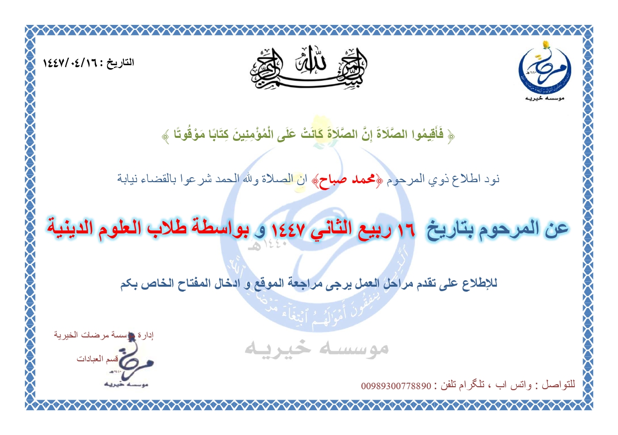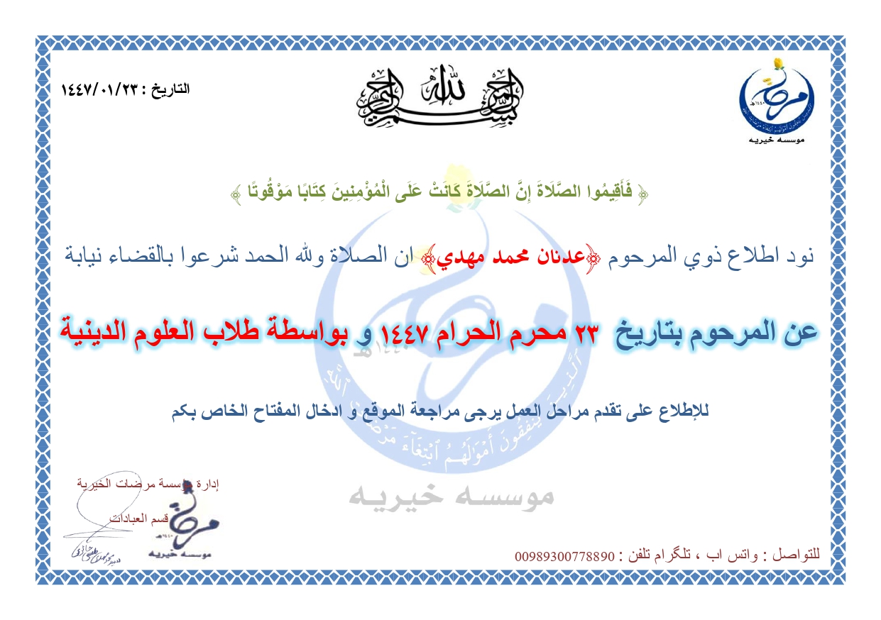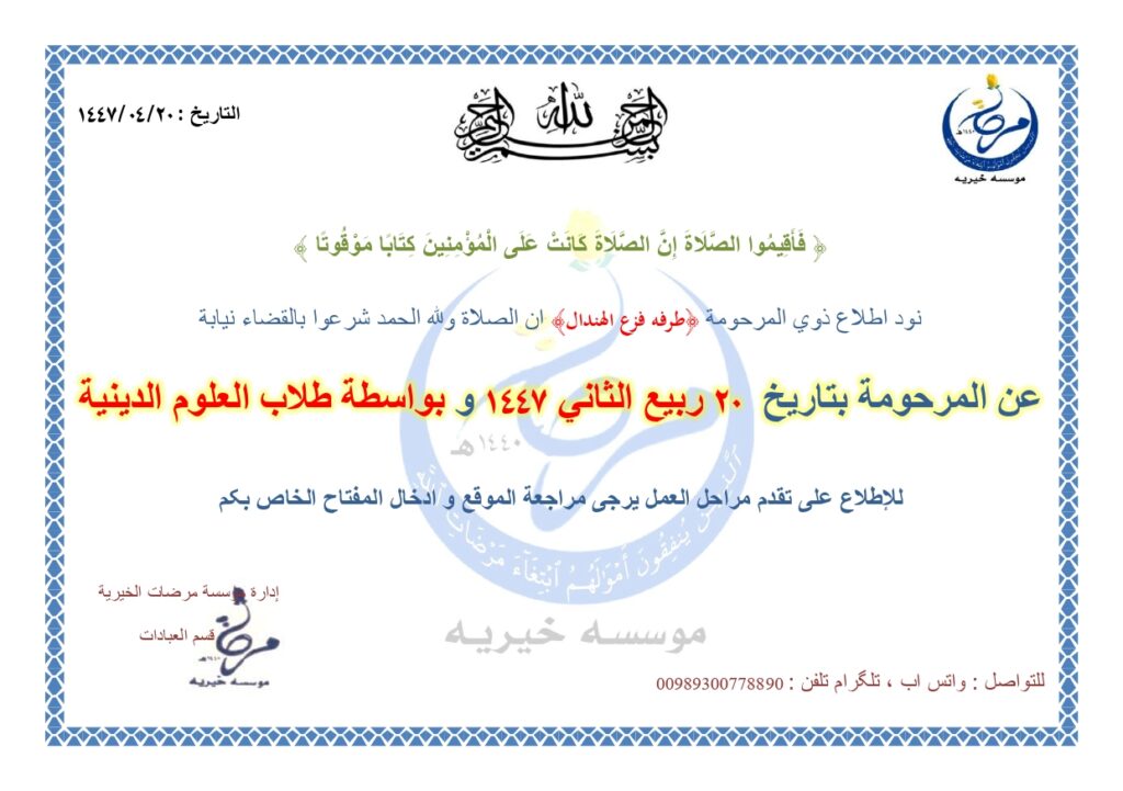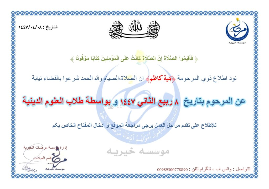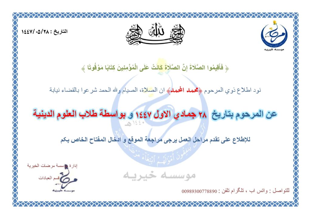 وقد أخذت مؤسسة مرضات الخيرية على عاتقها بيان أهمية وفضل القضاء عن الميت والذي من خلاله يمكن للمسلمين تكريم أحبائهم المتوفين ومساعدة المجتمع الإسلامي.